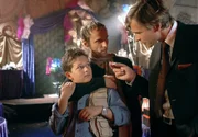 Tiere in NotLilly (Laura Gabriel) ist in der Hand von gewissenlosen Tierschmugglern (Hannes Hellmann, rechts, Matthias Bundschuh, links).Bild: © NDR/Romano Ruhnau