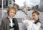 FamilienbandeRasmus (Julian Winterbach, li.) und Lina (Lale H. Mann) haben das Baby gerettet.Bild: © NDR/Romano Ruhnau