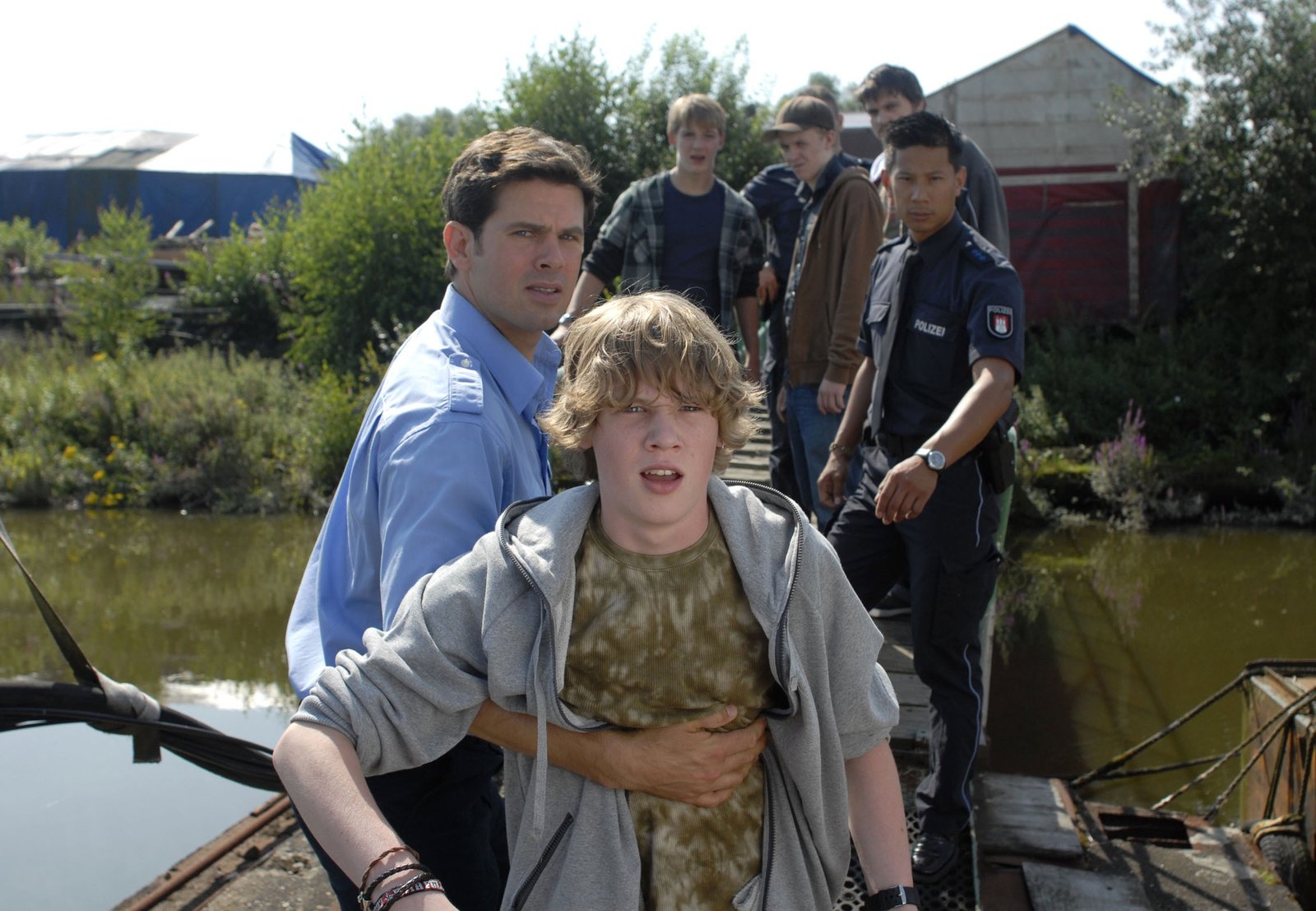 Happy SlappingSchluss mit den Happy Slapping - Videos: Roman (Steffen Groth, li.) nimmt Jan (Simon Janke, re.) in Gewahrsam.Bild: © NDR/Romano Ruhnau