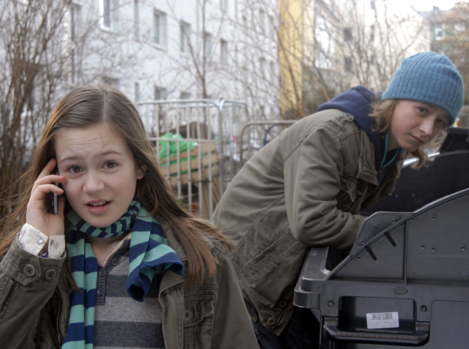 Gekaufte SpieleNiklas (Jaden Dreier, links) ist ins Fleet gestiegen, um Jessis (Martha Fries) Kamera zu retten.Bild: © NDR/Romano Ruhnau