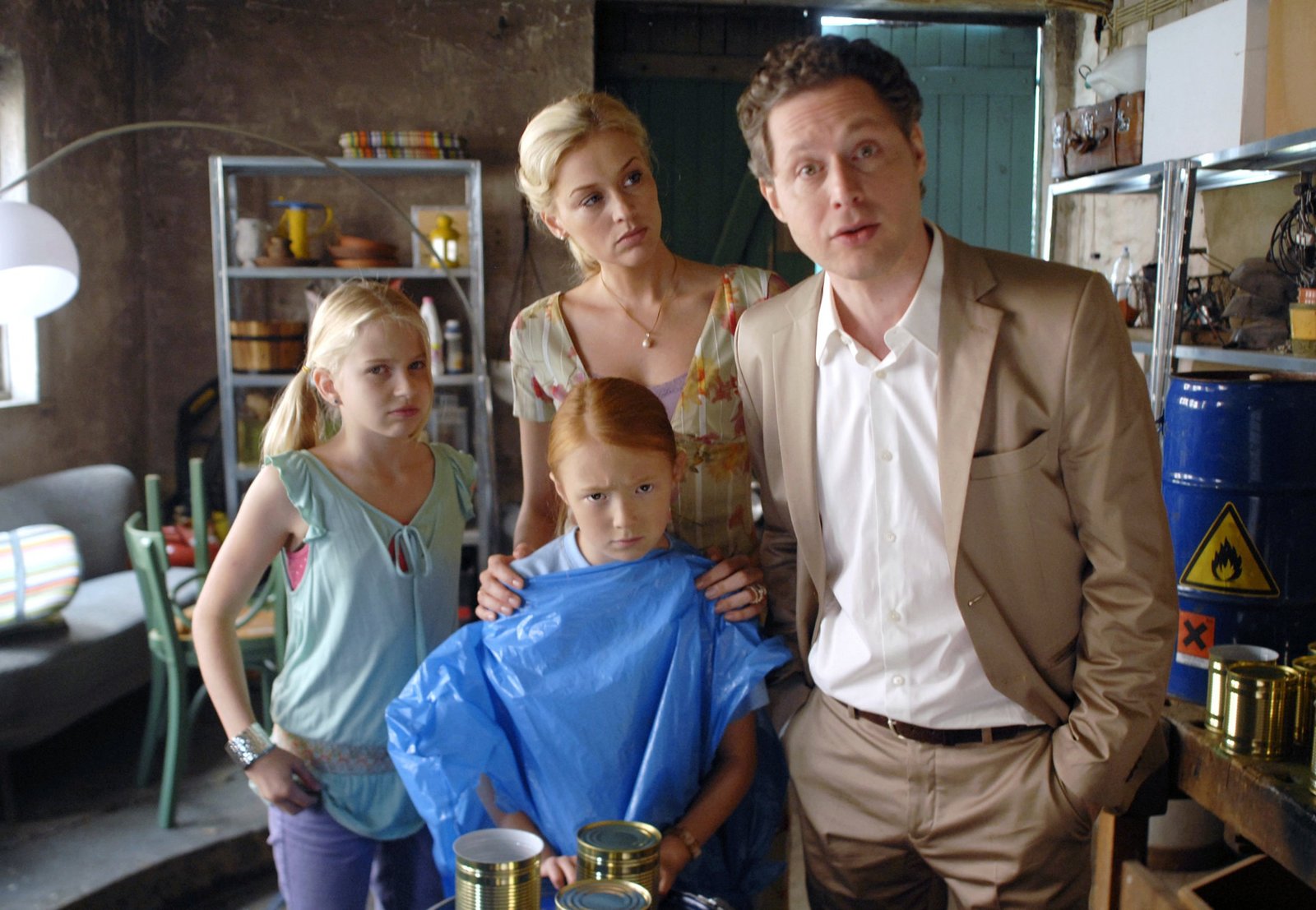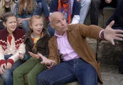 Die UmweltsünderinEmma (Aurelia Stern, Mitte) ist empört, weil sie als Umweltsünderin beschuldigt wird. Ihre Schwester Sophie (Katherina Unger) und ihre Eltern Maike (Verena Mundhenke) und Hannes (Jörn Knebel) auch.Bild: © NDR/Romano Ruhnau