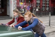 Das SpinnennetzNina (Carolin Garnier) und Emma (Aurelia Stern) schieben Dragans Cabrio ins Halteverbot.Bild: © NDR/Romano Ruhnau