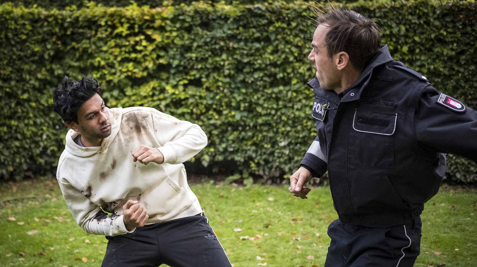 GeködertAnton (Danilo Kamer) gibt nicht auf: irgendwo hier im Park muss sich der Täter aufhalten...Bild: © NDR/Romano Ruhnau