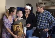 Der Fluch der Schwarzen MadonnaKarol (Moritz Glaser) ist nicht glücklich über das Geschenk seines Onkels Pawel (Martin Becker, 2. v. rechts). Seine Eltern Janina (Katerian Poladjan, li) und Tadeusz (Marek Gierszal) sind skeptisch.Bild: © NDR/Romano Ruhnau