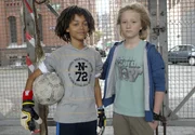 Auf und davonThemba (Coco Nima, li.) und Rasmus (Julian Winterbach) machen ein Elfmeterschießen um die Gunst von Sophie.Bild: © NDR/Romano Ruhnau