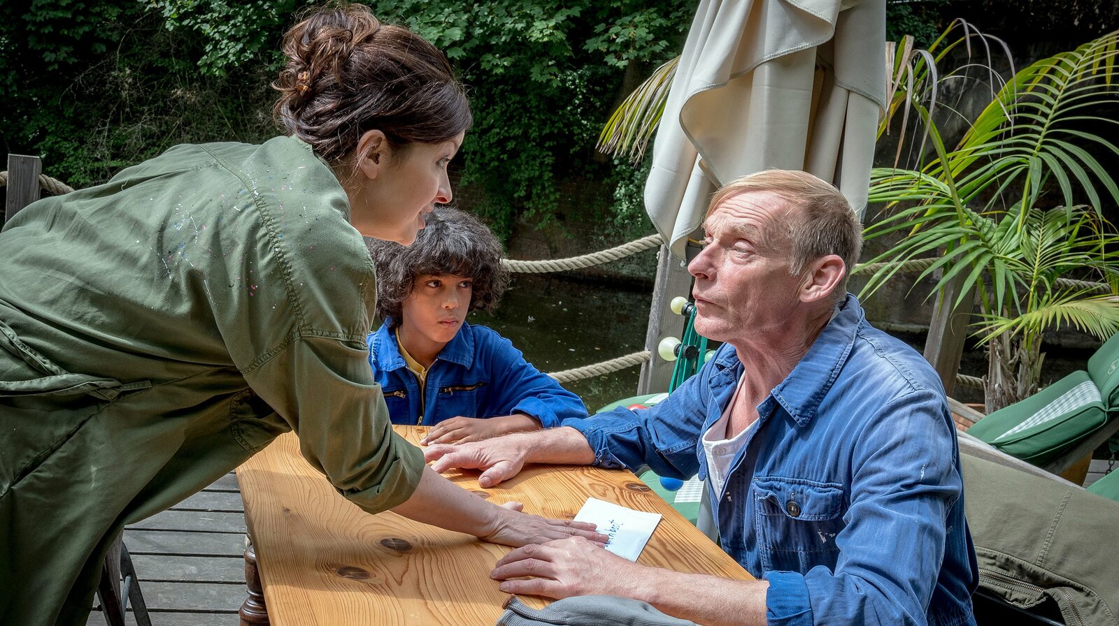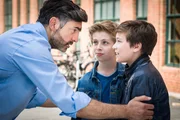 Geraubte KunstNavid (Neil Malik Abdullah, links) ist erleichtert, als er seinen Sohn Ramin (Jann Piet, rechts) und Till (Otto von Grevenmoor) unbeschadet in die Arme schließen kann.Bild: © NDR/Boris Laewen