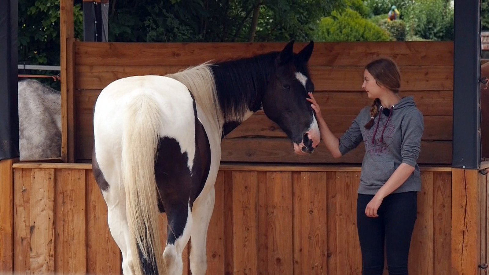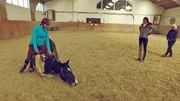 Marlene Schürmann und Stute "Snykers" / Sabrina Bockes und "Thorin"Pferdeprofi Bernd Hackl ist inzwischen von "Thorin" so überzeugt, dass er weit mehr als nur Sabrinas Minimalziel - ihr Pferd führen, putzen und knuddeln zu können - erreichen möchte.Bild: © VOX / Mina TV