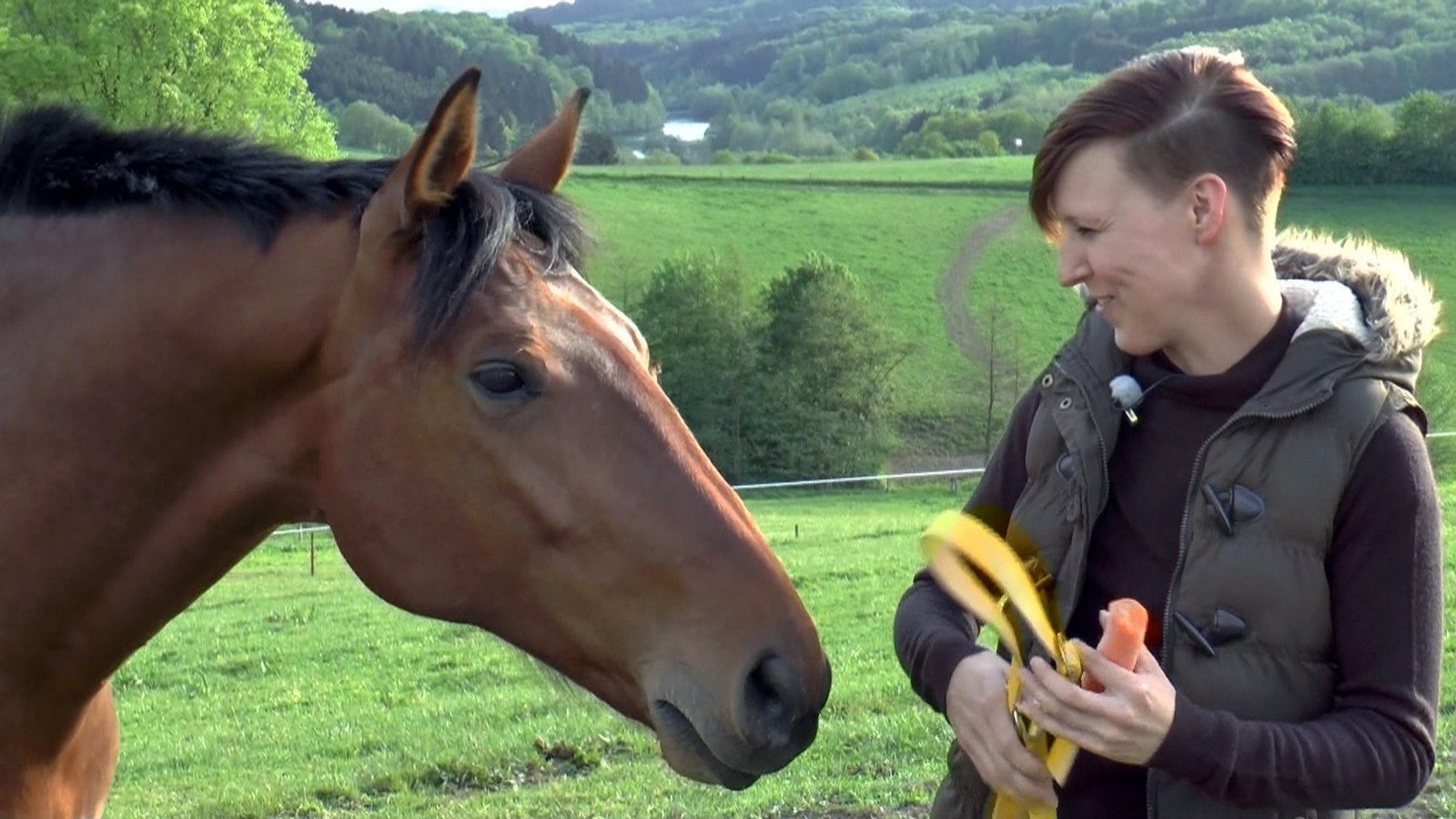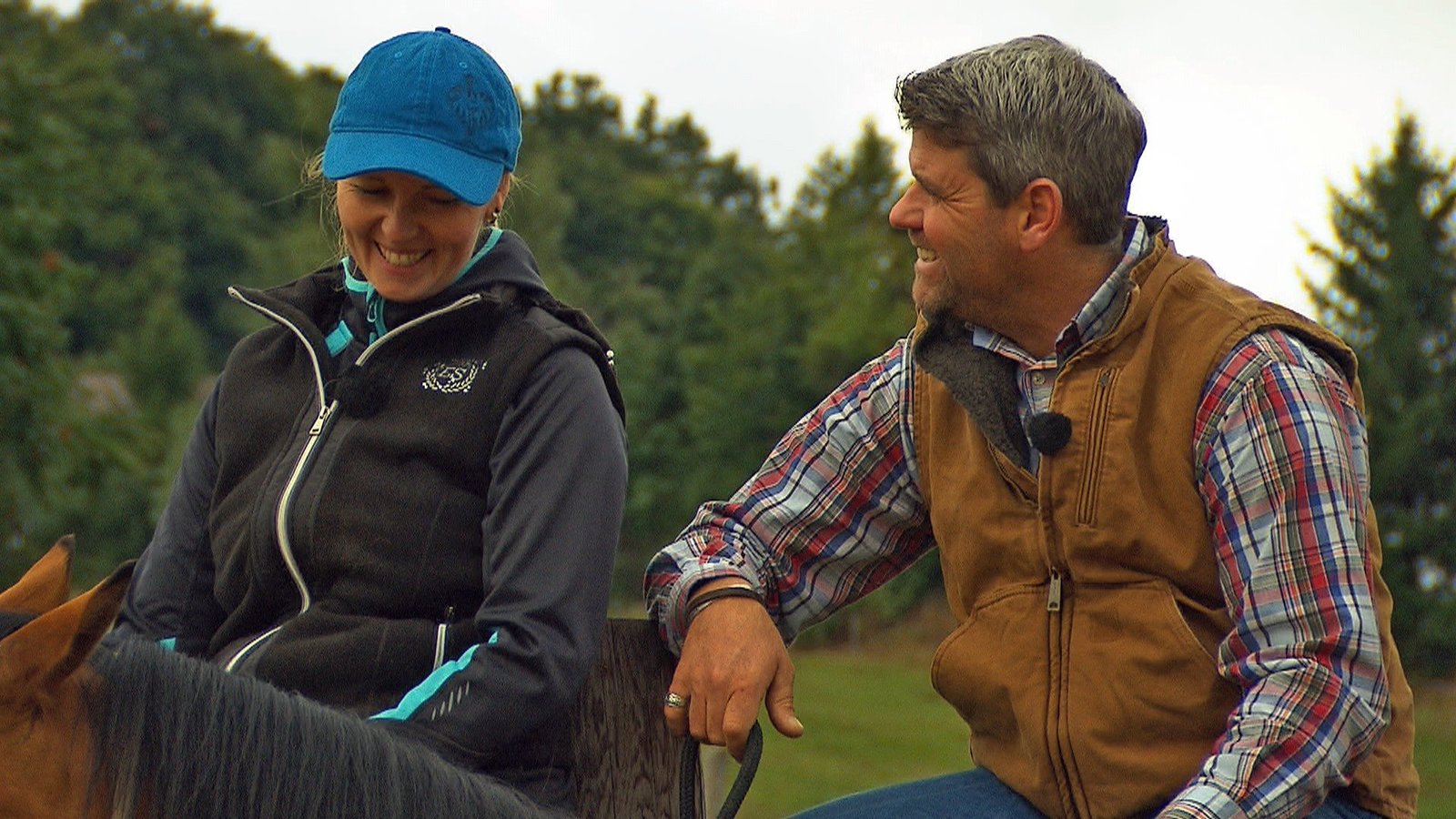 Columbus / Harry und Kathlene"Columbus" rastet schon aus, wenn Christel Kraus nur mit einer Sicherheitsweste um die Ecke kommt, den Fuß darf sie überhaupt nicht in Richtung Steigbügel heben. Kann Bernd Hackl helfen?Bild: © TVNOW / Mina TV