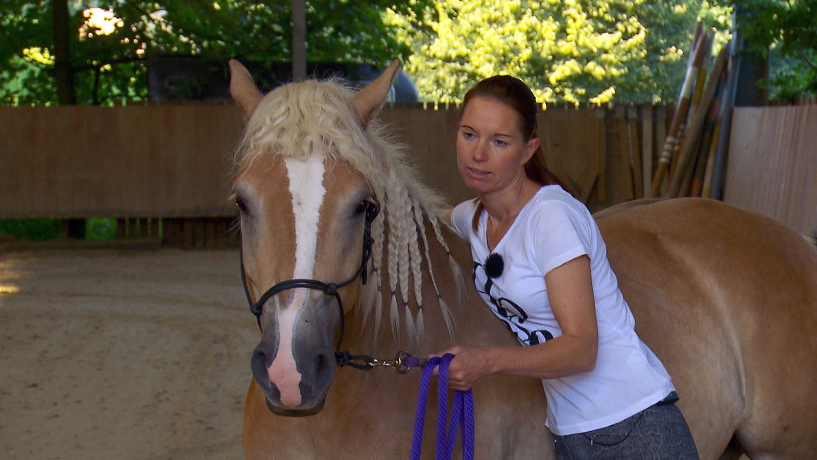Haflingerwallach "Nero" / Stute "Hadiya"Sandra Schneider (l.), "Nero" und Besitzerin Bea Broszehl.Bild: © MG RTL D / Mina TV
