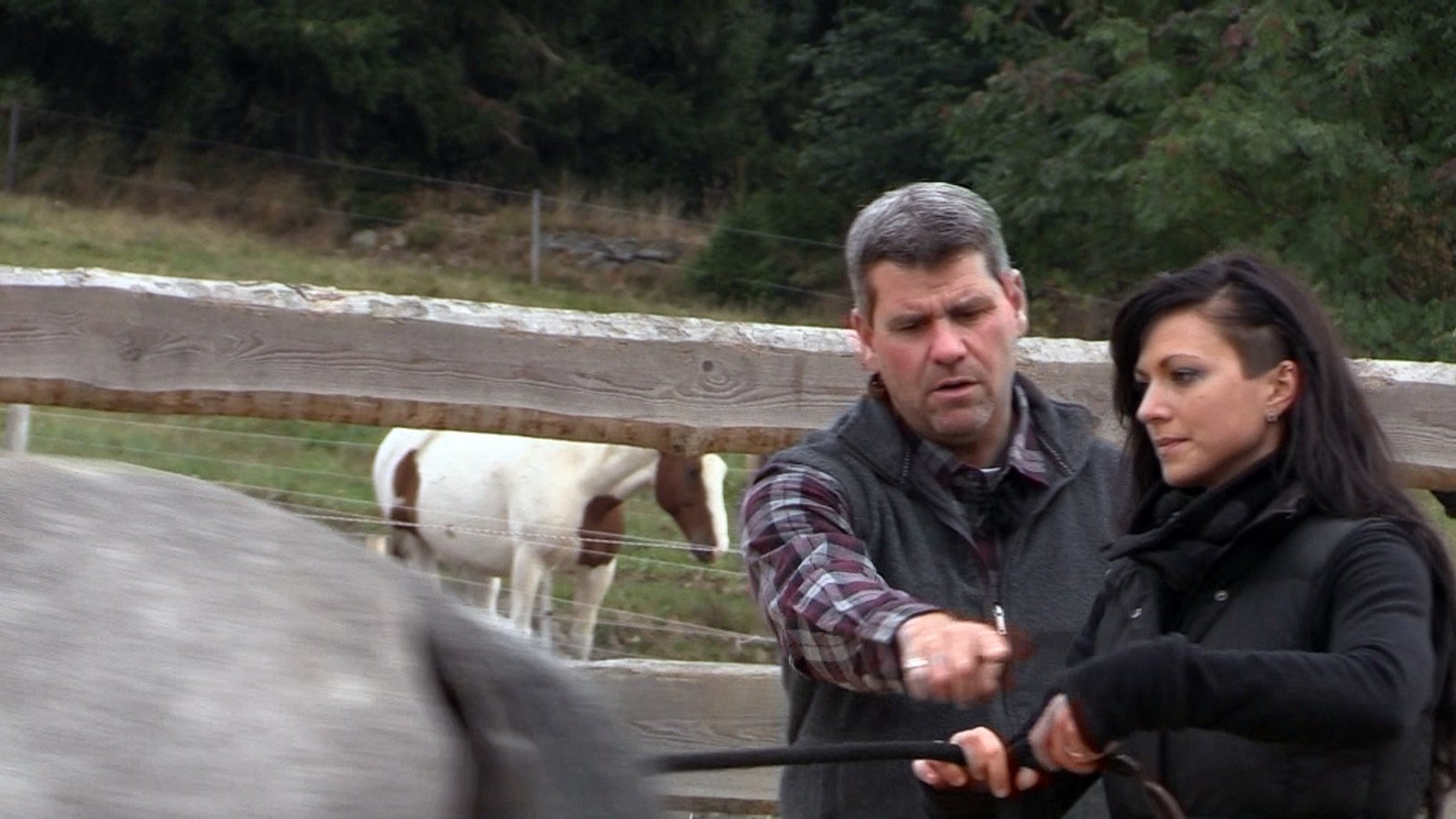 Columbus / Harry und Kathlene"Columbus" warf seine Besitzerin schon mehr mal im hohen Bogen herunter. Inzwischen gibt es in der Ausbildung des fünfjährigen Wallachs mehr Rückschritte als Erfolgserlebnisse zu verzeichnen. Kann Bernd Hackl helfen?Bild: © VOX / Mina TV