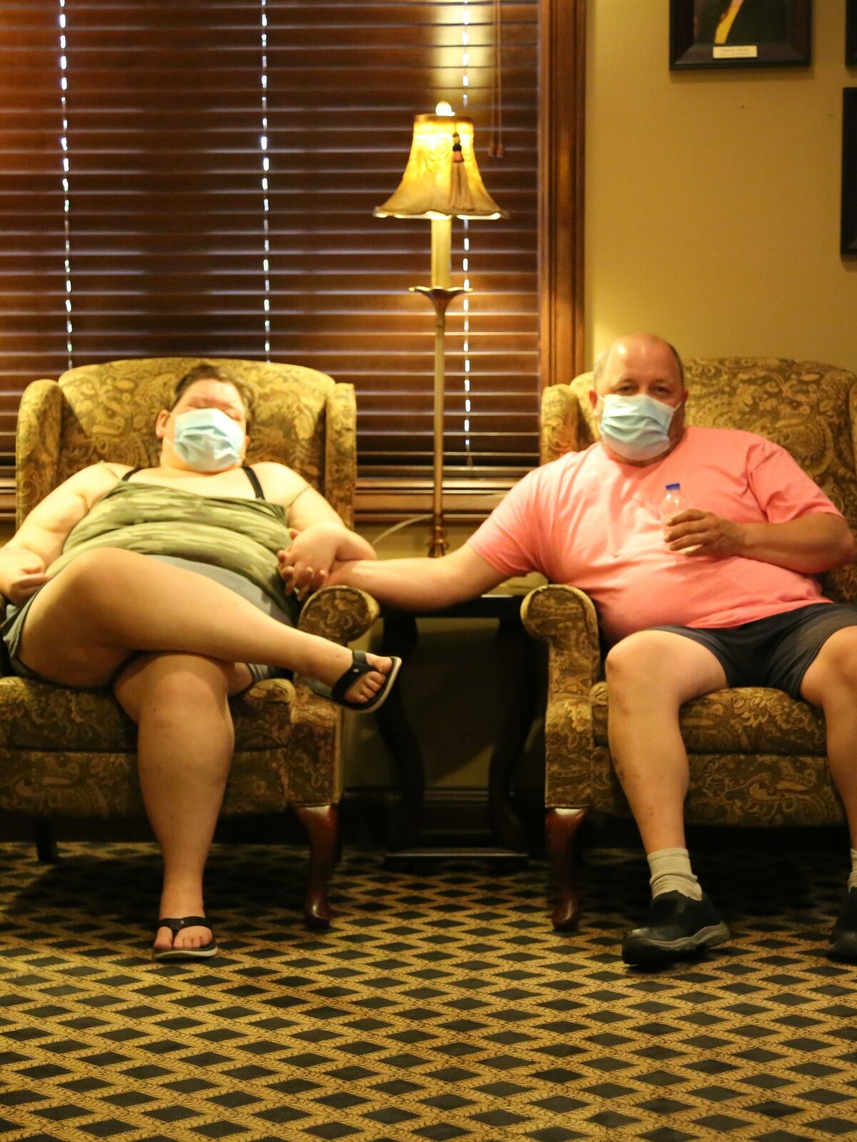 Wir sind die Slaton-SchwesternAmy leans over onto Michael while they’re sharing a park bench.Bild: © Scott Ippolito / Discovery Communications, LLC /