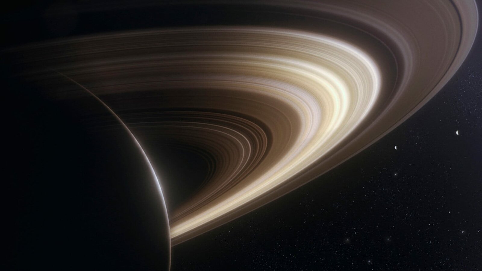SaturnSaturns Ringe bestehen fast vollständig aus Eis. Sie sind so hell, dass sie das Sonnenlicht reflektieren und so auch von der Erde aus mit dem Teleskop zu erkennen sind.Bild: © ZDF und Lola Post Production./Lola Post Production