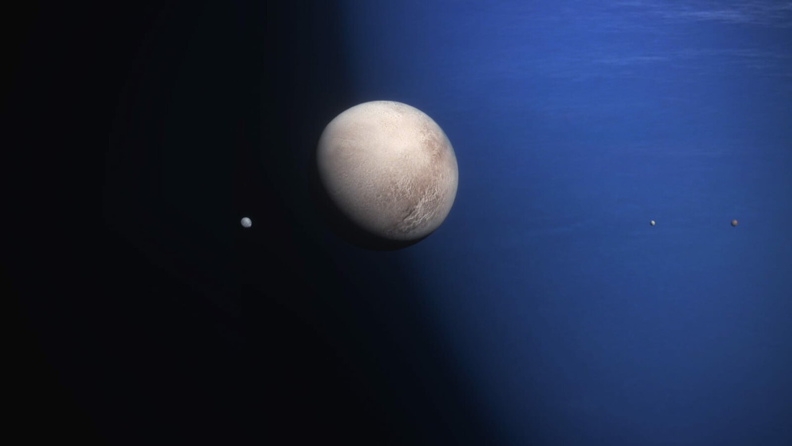 EisweltenTriton ist einer von Neptuns 14 Monden. Er fällt gleich in vielerlei Hinsicht aus der Reihe. Während die anderen Monde den Planeten in seiner Rotationsrichtung umkreisen, hat Triton eine retrograde Umlaufbahn, er umkreist ihn also in die entgegengesetzte Richtung.Bild: © ZDF und NASA/JPL-Caltech/Lunar & Planeta./NASA/JPL-Caltech/Lunar & Planeta