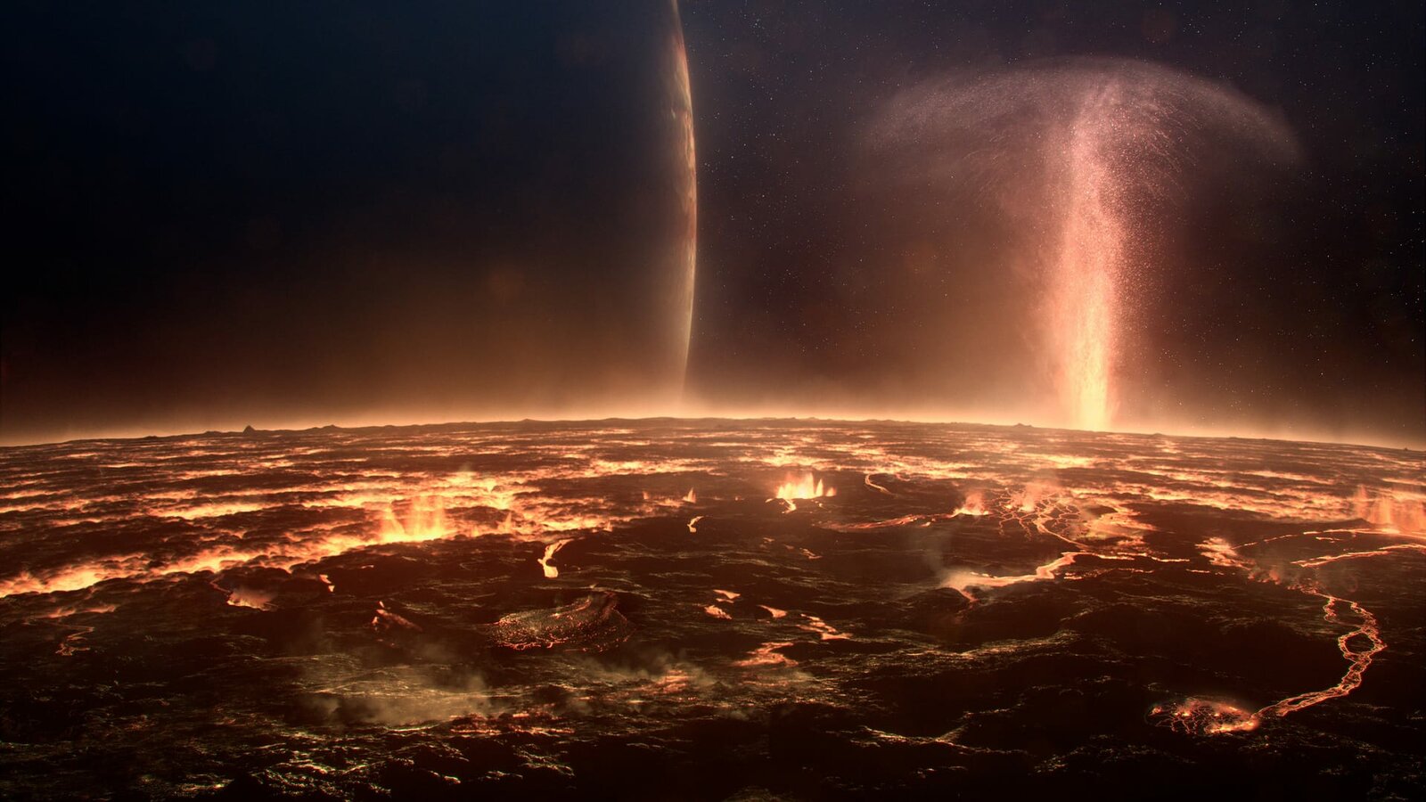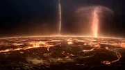 JupiterMit mehr als 300 Vulkanen, die nahezu konstant ausbrechen, ist Io der vulkanisch aktivste Ort im Sonnensystem. Die Plumes (aufsteigende Gasmassen) reichen Hunderte Kilometer in die Atmosphäre.Bild: © ZDF und NASA/JPL-Caltech/SwRI/MSSS/Kevin M. Gill./NASA/JPL-Caltech/SwRI/MSSS/Kevin