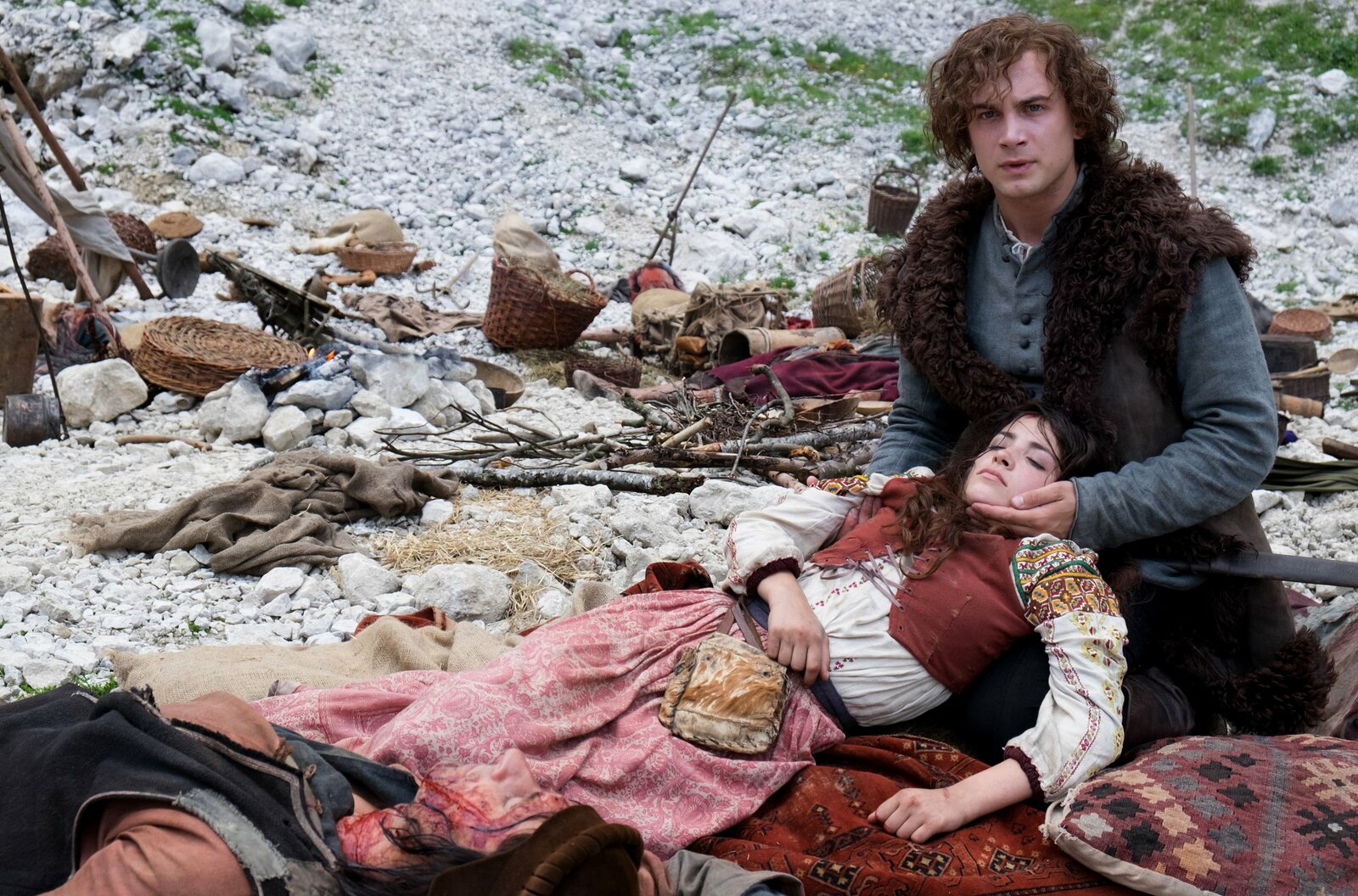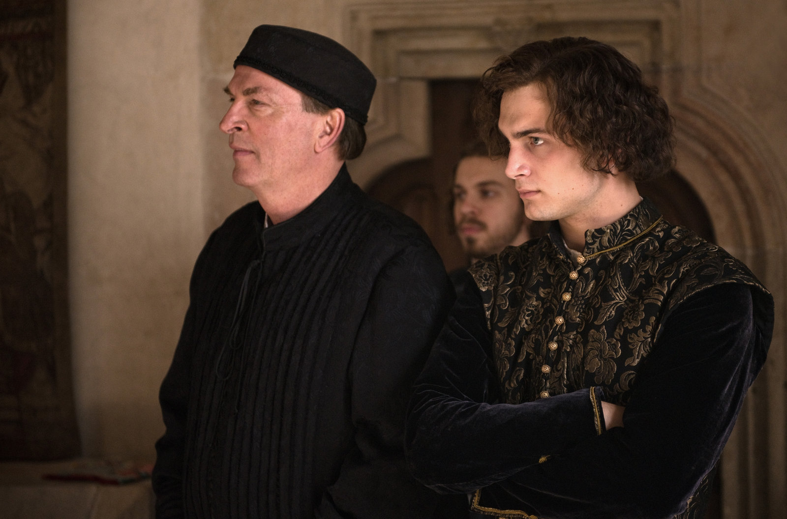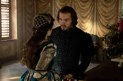 Ans LichtCesare Borgia (Edin Hasanovic, Mitte), der Sohn von Papst Alexander VI., ist von der Zigeunerin Saviya (Helen Woigk) fasziniert.Bild: © ARD Degeto/Ziegler Film/Václav S / ARD Degeto/Programmplanung und P