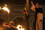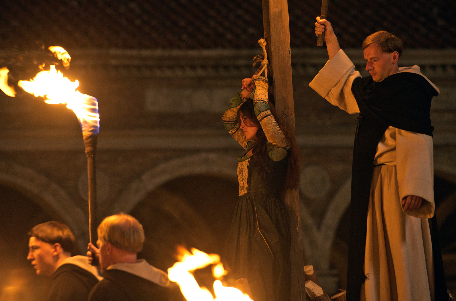 Ans LichtHeinrich Institoris will die Zigeunerin Savia (Helen Woigk) auf dem Scheiterhaufen hinrichten lassen.Bild: © ARD Degeto/Ziegler Film/Václav Sadílek