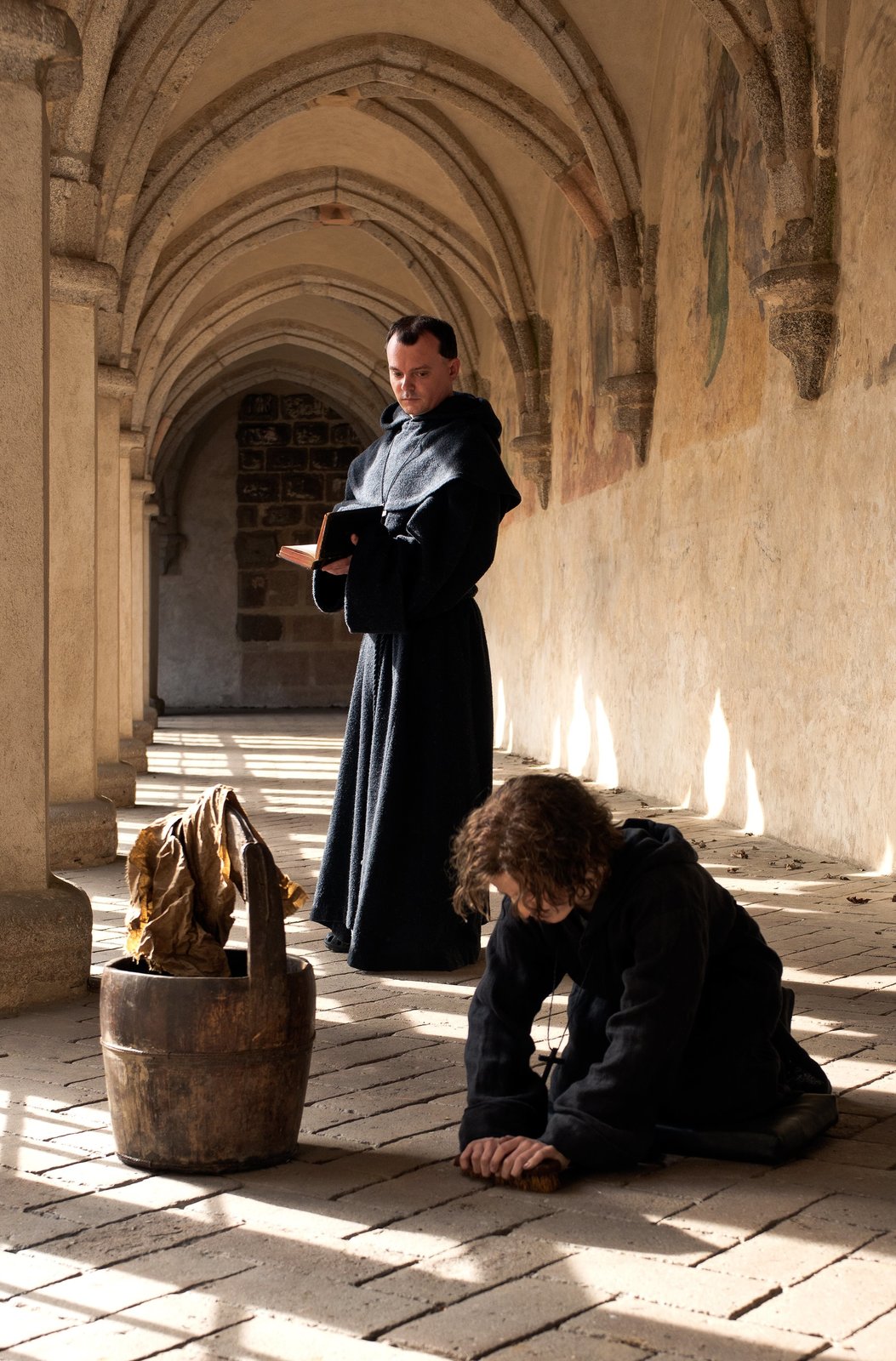 Aus dem FeuerDer Klosterschüler Richard (Petr Cemper) war ungehorsam und muss zur Strafe den Boden putzenBild: © ARD/BR/Ziegler Film GmbH & Co. KG/Václav Sadilek / Václav Sadilek