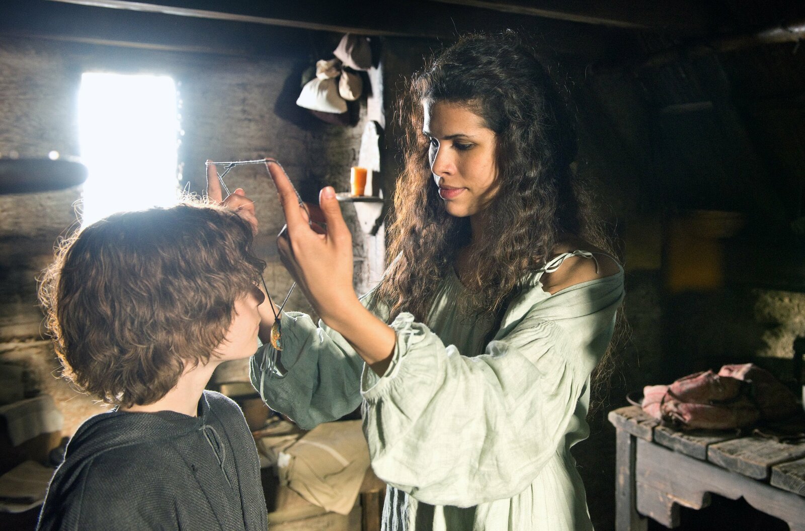 Aus dem FeuerDie zum Christentum konvertierte Sarazenin Zobeida (Veronika Strapková) schenkt ihrem Sohn Richard (Petr Cemper) ihre Kette.Bild: © ORF/Ziegler Film/Václav Sadílek