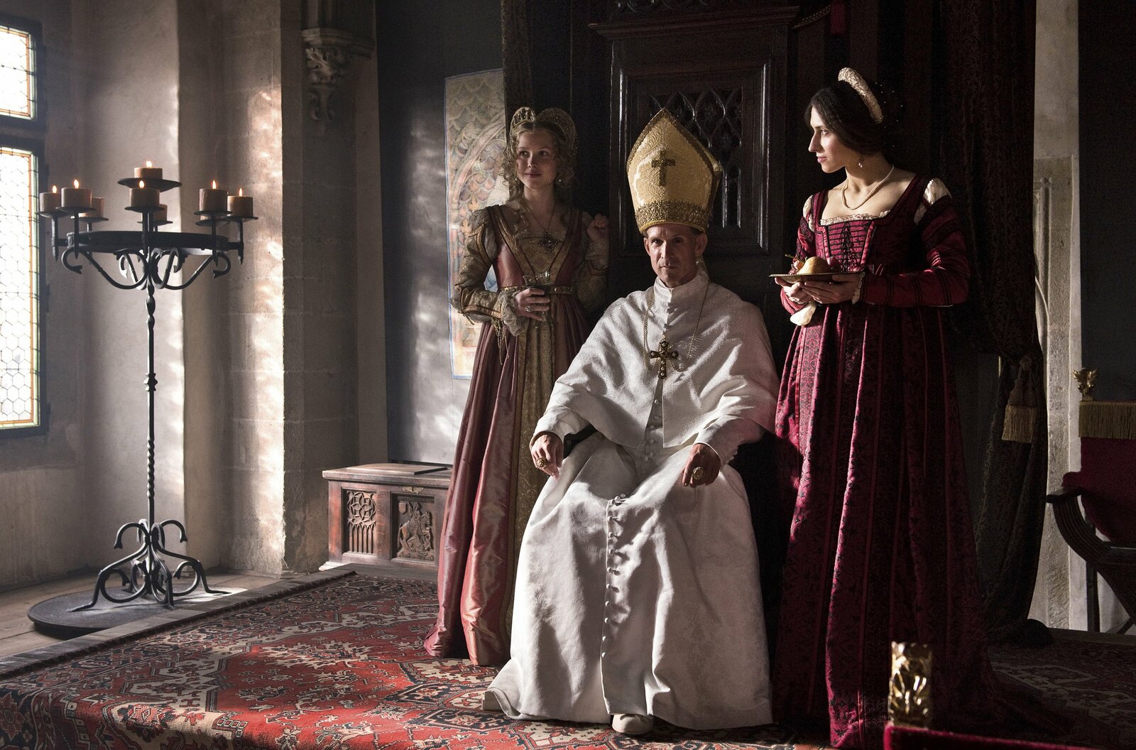 Aus dem FeuerDer amtierende Papst liegt im Sterben, und um seine Nachfolge entbrennt ein erbitterter Kampf. Der spanische Kardinal Borgia (Ulrich Matthes) will mit allen Mitteln dessen Nachfolge antreten – und schreckt dabei auch vor Mord nicht zurück.Bild: © ARD Degeto/Ziegler Film/Václav Sadílek