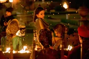 Ans LichtDie Zigeunerin Saviya (Helen Woigk, Mitte) hat sich von Richard nicht abhalten lassen und tanzt vor dem neuen Papst Alexander VI. und seinen Gästen.Bild: © ARD Degeto/Ziegler Film/Václav Sadílek