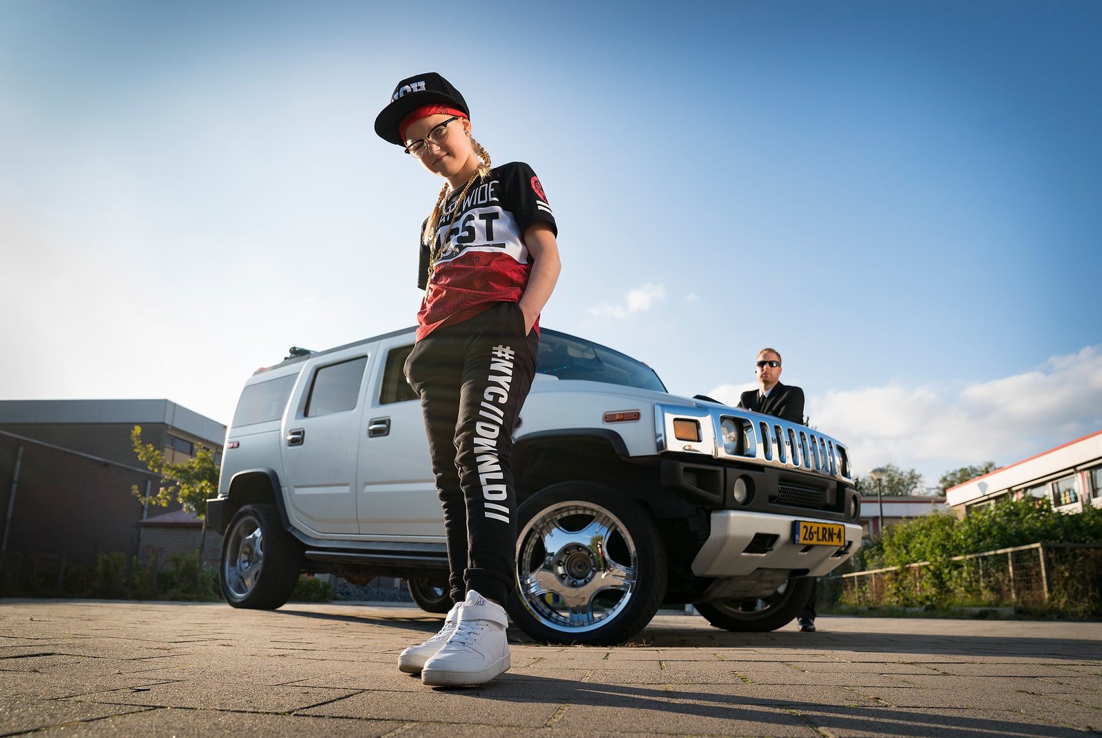 Die ArmbanduhrFloor (Bobbie Mulder) und Jan (Ferdi Stofmeel) vor ihrem geliehenen teuren Auto.Bild: © KiKA