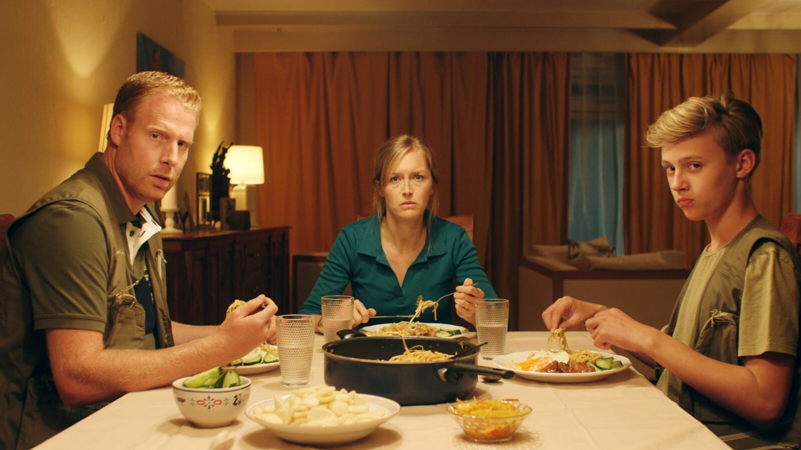 Der GefallenIrma (Elisa Beuger, li.), Kees (Ole Kroes, Mi.) und Floor (Bobbie Mulder, re.) besuchen heimlich eine Imbissbude.Bild: © NDR/NL Film