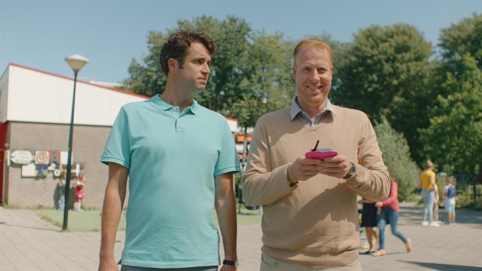 ScheidungKees (Ole Kroes) wird dabei erwischt, wie er auf dem Schulgelände etwas verkauft.Bild: © NDR/NL Film