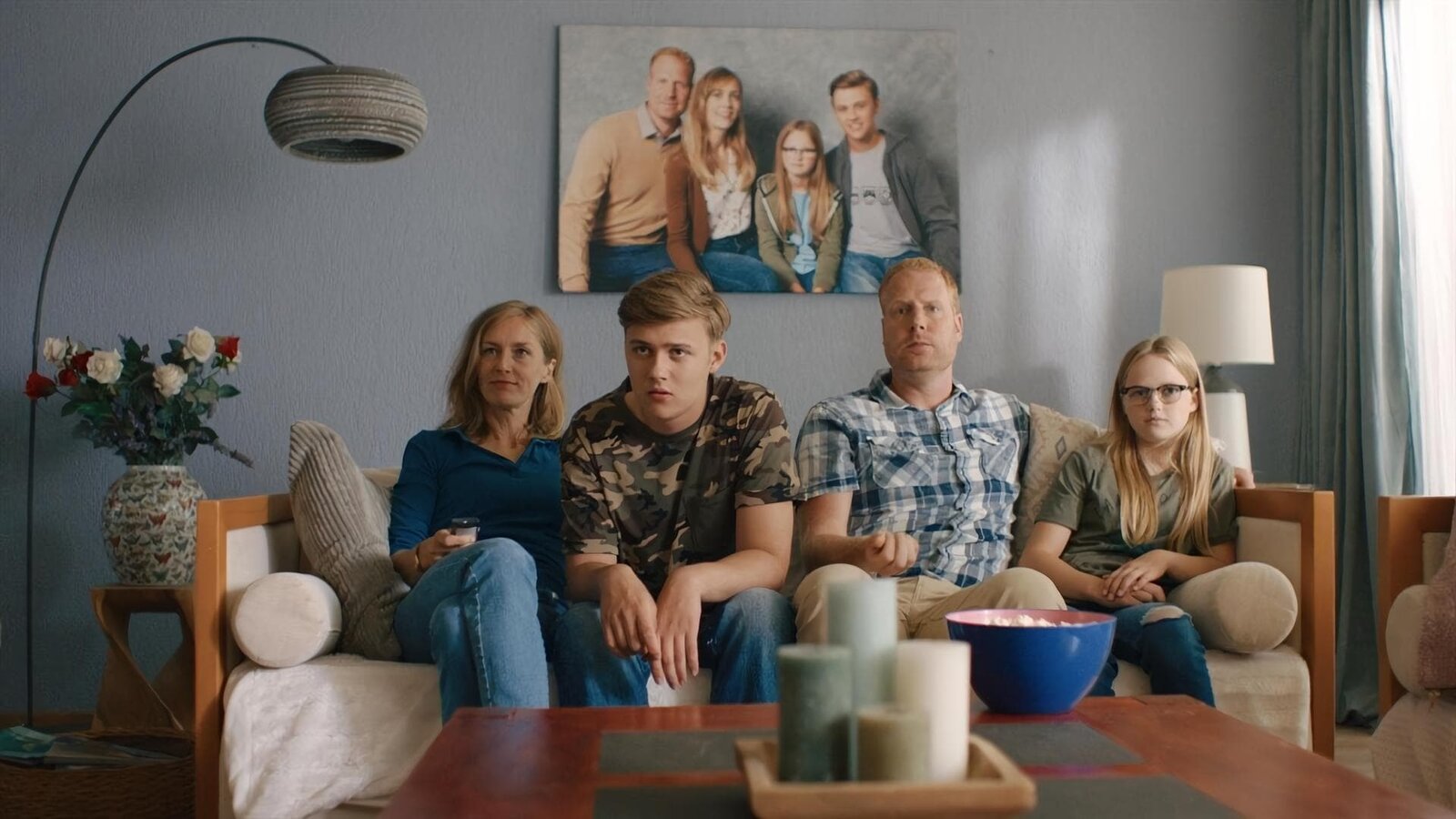 FamilienfotoFloor (Bobbie Mulder, li.), Jan (Ferdi Stofmeel, 2.v.li.), Irma (Elisa Beuger, 2.v.re.) und Kees (Ole Kroes, re.) kurz vor ihrem Familienfotoshooting.Bild: © NDR/NL Film/Maurice Trouwborst