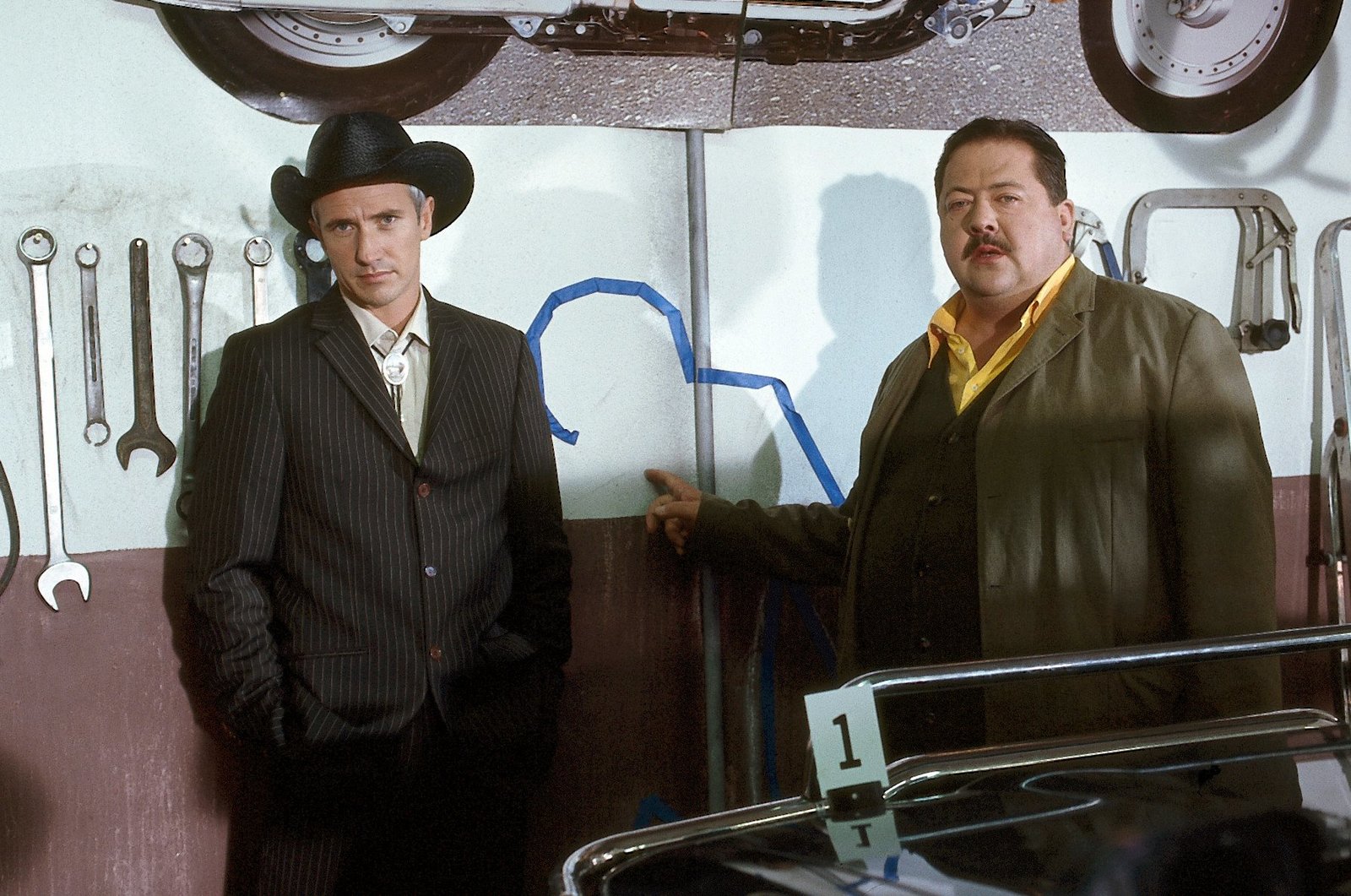 Der Bulle von RosenheimKaum vom Lehrgang aus Amerika zurück muss Ulrich Satori (Markus Böker, l.) mit seinem Kollegen Korbinian Hofer (Josef Hannesschläger) bereits den ersten Tatort inspizieren.Bild: © ORF 2