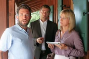 Auf Kommando totIst die Ehefrau des Opfers, Margit Herzog (Katharina Stemberger, m.) wirklich unschuldig? Marie (Karin Thaler, r.) weiß, dass die Arztgattin ein Verhältnis mit Dr. Eduard Heinzen (Rhon Diels, l.) hat. Honorarfrei - nur für diese Sendung bei Nennung ZDF und Christian A. RiegerBild: © ORF/ZDF/Christian A. Rieger