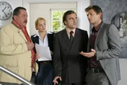 Kuhgebrüll als AlibiKorbinian Hofer (Joseph Hannesschläger, l.) und Sven Hansen (Igor Jeftic, r.) befragen, Edmund Burghard (Daniel Rohr), vor dem dessen Mitarbeiterin Gerlinde Roth (Lena Baader) offenbar mehr als Respekt hat.Bild: © ORF/ZDF/Christian A. Rieger