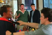 Petri Heil13. Fischwilderer Freddy (Tristano Casanova, r.) will Hobby-Segler Ellwanger (Christian Tramitz, l.) zu einer Aussage zwingen. In letzter Minute können die Rosenheim-Cops (Joseph Hannesschläger, Markus Böker) schlimmeres verhindern. (v.l.n.r. Christian Tramitz, Joseph Hannesschläger, Markus Böker, Tristano Casanova)Bild: © Christian A. Rieger