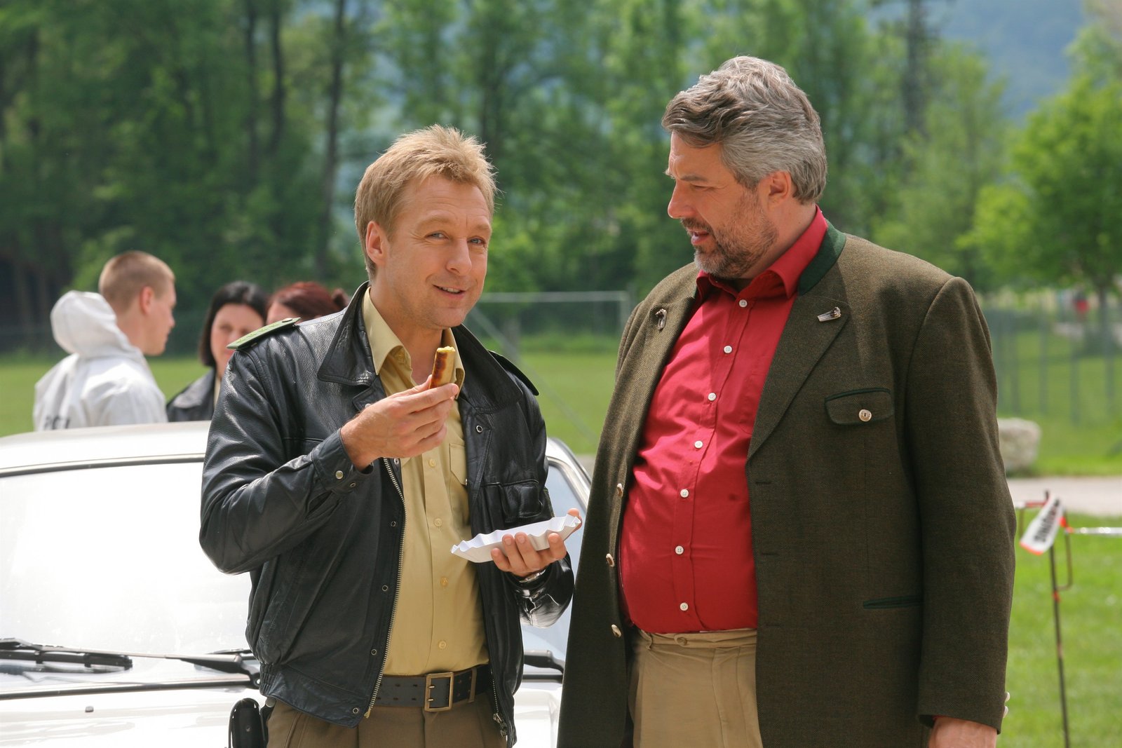 Zu Tode gesteigertAls Polizist Mohr und Kommissar Stadler (Max Müller, l.; Dieter Fischer, r.) die verschwundene Lederhose in der Nähe des Tatorts finden, nimmt der Fall eine Wendung.Bild: © ORF2