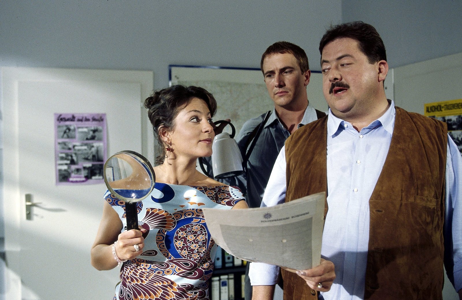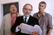 Salsa in den TodHarry Prinz (Thomas Fritsch, mi) kann den Cops Hofer (Josef Hannesschläger) und Satori (Markus Böker, re.) mit seinen Unterlagen beweisen, dass alle Verdächtigungen gegen ihn böse Unterstellung sind.Bild: © ORF 2