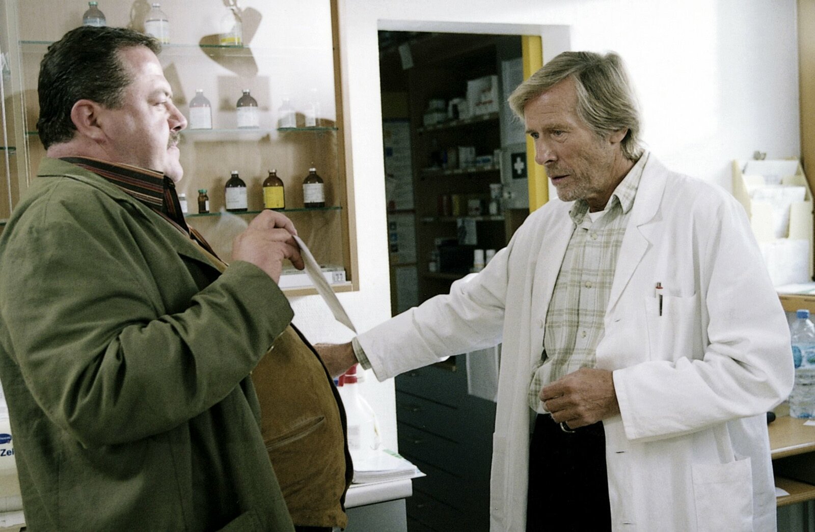 Auf Eis gelegtDr. Daxenberger (Horst Janson, re.) ist schockiert, als ihm Cop Korbinian Hofer (Joseph Hannesschläger) das Bild des seit zwei Jahren vermissten und ermordet aufgefundenen Anton Thalhauser zeigt.Bild: © ORF 2