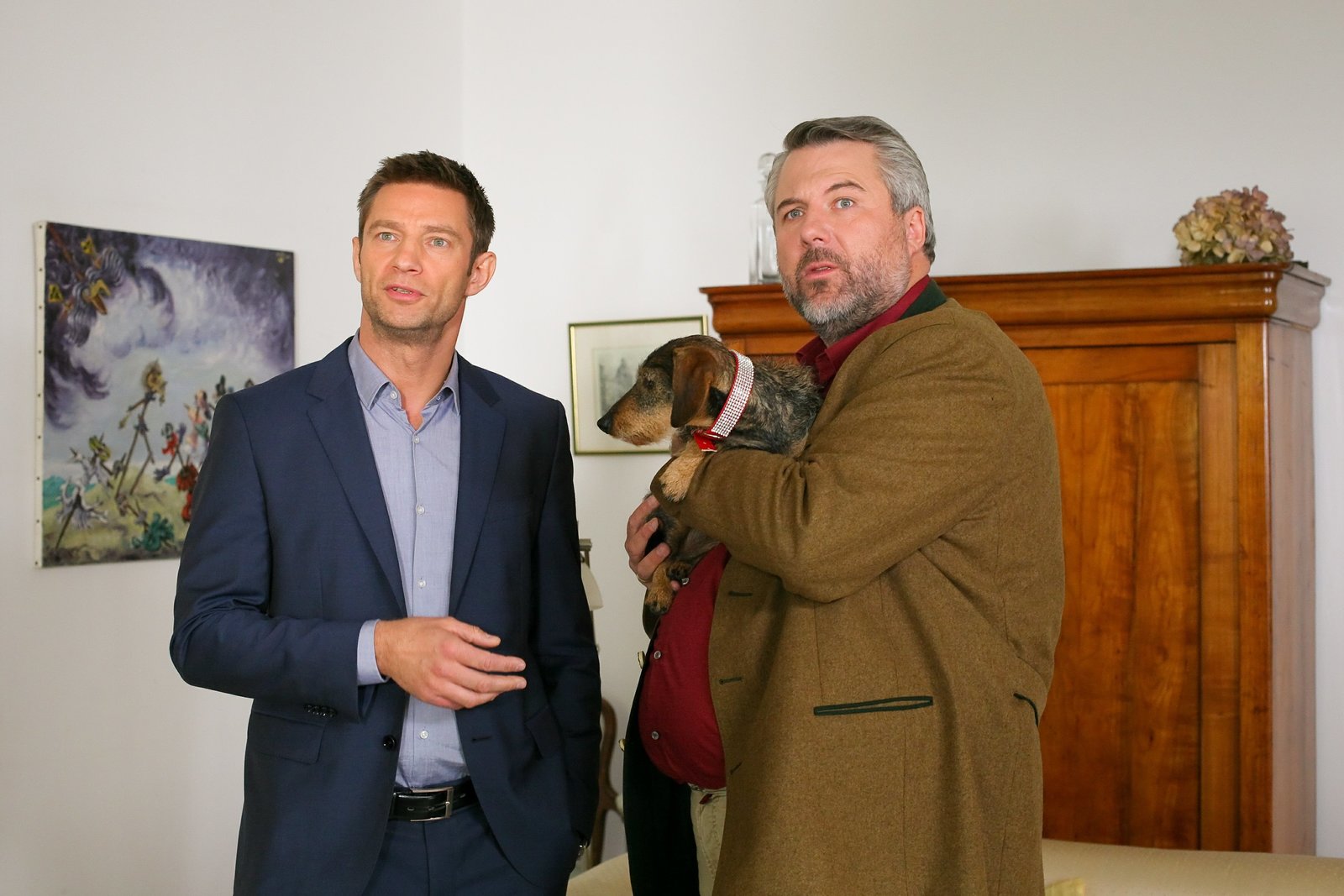 Safe mit mörderischem InhaltHat Dr. Karl Zilles (Oliver Strietzel, li.) vor, Rosenheim-Cop Sven Hansen (Igor Jeftic, r.) etwas zu verbergen?Bild: © ORF/ZDF/Christian A. Rieger