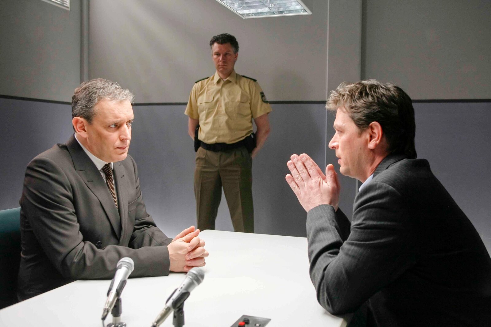 Süße Lust47. Noch ahnt Michael Wendling (Frank Kessler), den Kommissar Hofer (Joseph Hannesschläger) wegen eines Mordfalls verhört, nicht, dass er das nächste Opfer ist. (v.li.n.re.: Frank Kessler, Joseph Hannesschläger). © RECHTEHINWEIS: -Bild: © Erika Hauri