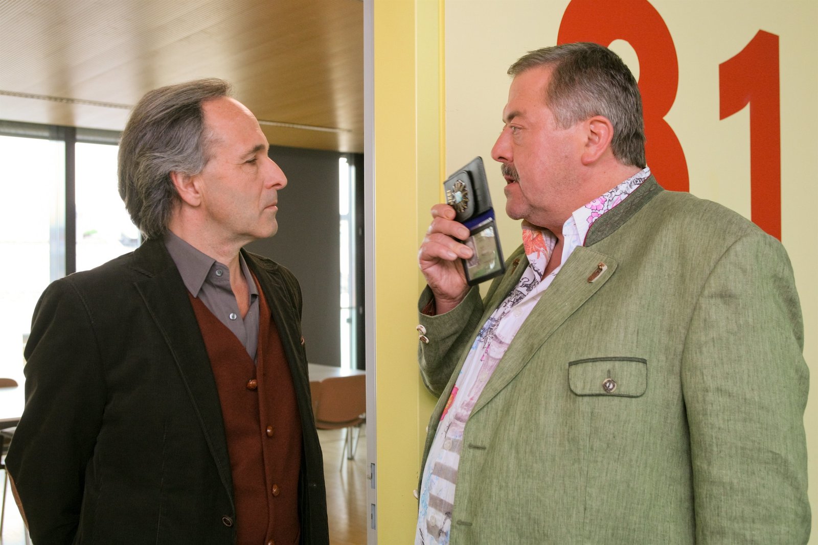 Der letzte WilleHat Gerd Kammer (Mats Reinhardt, l.) den IT-Fachmann umgebracht, weil dieser sich betrogen fühlte? Für Kommissar Hartl (Michael A. Grimm, r.) ein nachvollziehbares Motiv.Bild: © ORF2
