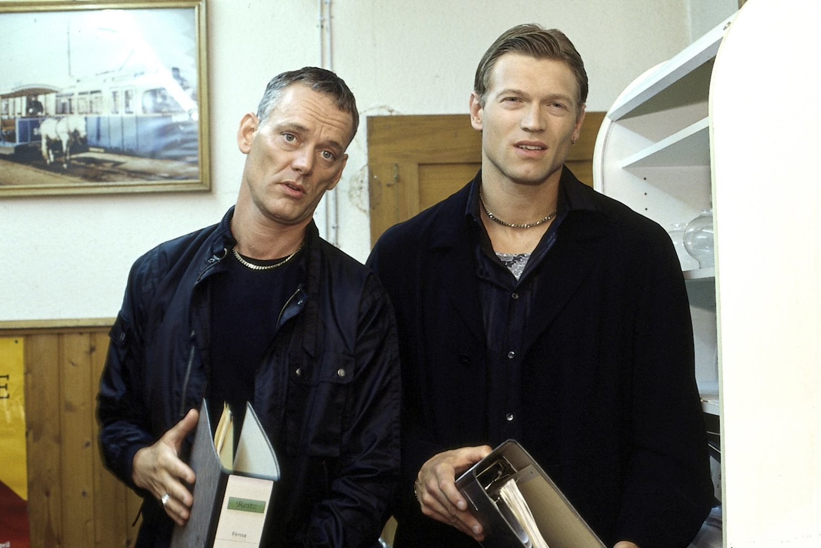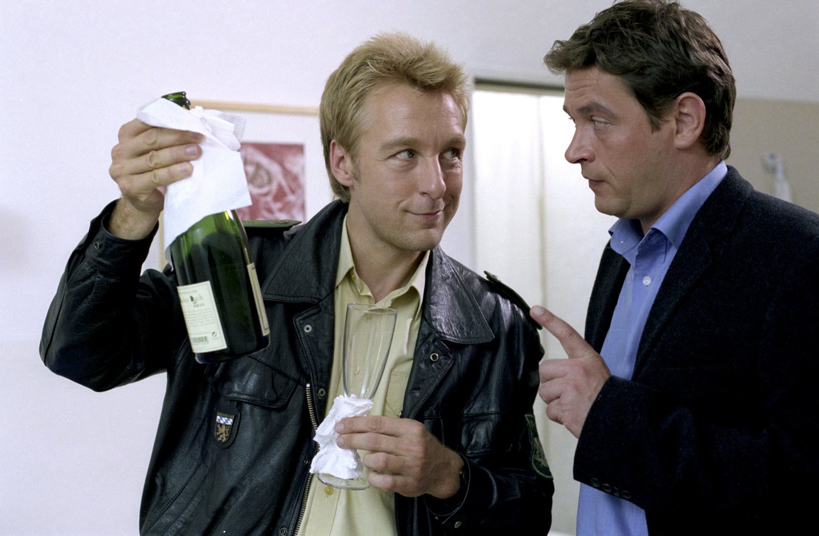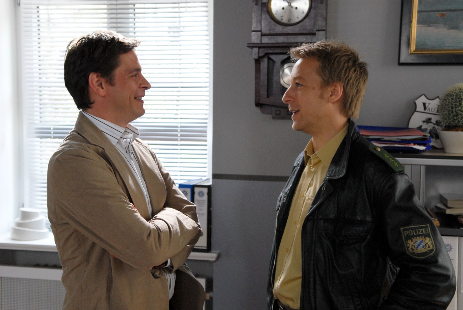 Die letzten TagePolizist Michi Mohr (Max Müller, l.) hat Spuren am Tatort sichergestellt, die Rosenheim-Cop Christian Lind (Tom Mikulla) beweisen, dass die Ermordete vor ihrem Tod noch ein angenehmeres Treffen gehabt haben muss.Bild: © ORF 2