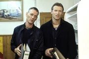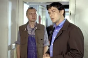 Fisslers FluchtRosenheim-Cop Christian Lind (Tom Mikulla, l.) und Polizist Michi Mohr (Max Müller) ahnen, dass Fissler mit ihnen ein Katz und Maus-Spiel treibt.Bild: © ORF 2