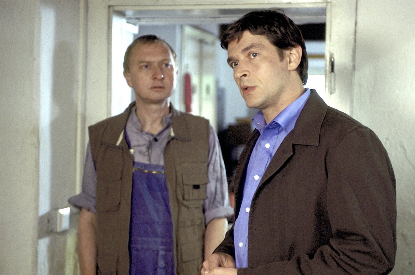 Zu Tode gekuscheltDie Kommissare Bach (Patrick Kalupa, l.) und Stadler (Dieter Fischer, r.) ermitteln im Mordfall des Kuscheltrainers Marco Däubler.Bild: © ZDF und Bojan Ritan.