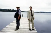 Der Tote am SeeSie könnten unterschiedlicher nicht sein: Hauptkommissar Korbinian Hofer (Joseph Hannesschläger, li.), im Nebenberuf Landwirt, und Hauptkommissar Ulrich Satori (Markus Böker), der Frauenschwarm aus München.Bild: © ORF/ZDF