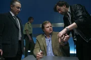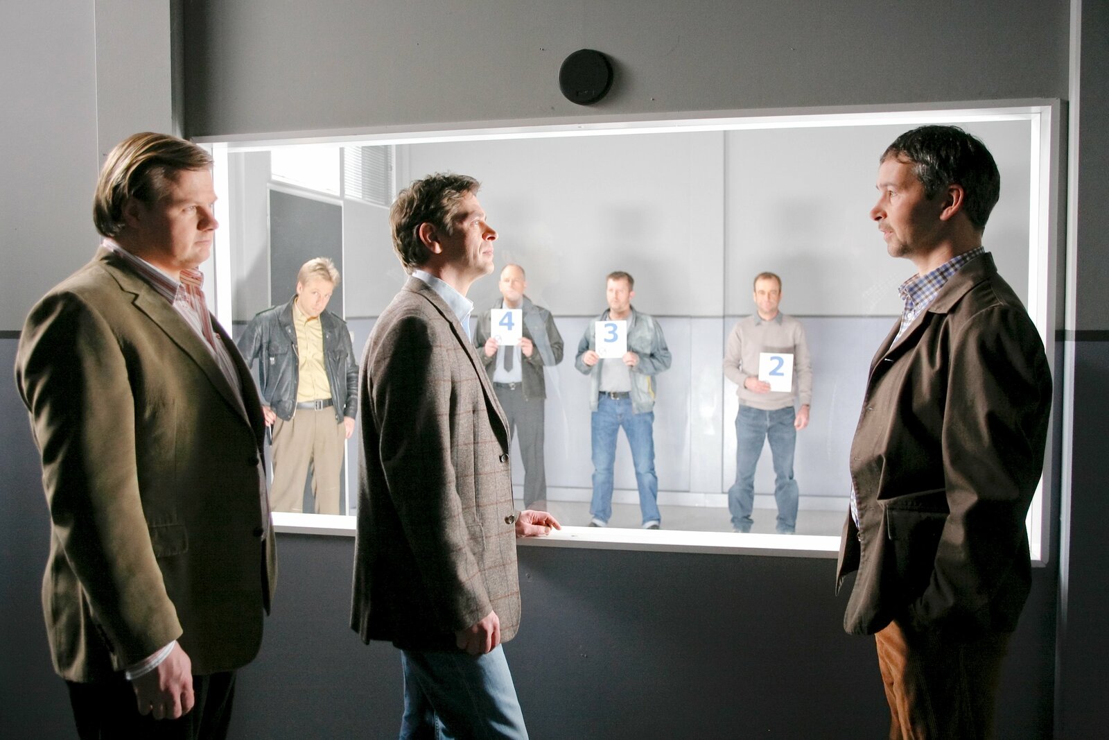 Ein Schuss in der NachtBei der Gegenüberstellung stellen die Kommissare Tobias Hartl und Christian Lind dem verdächtigen Herbert Bräuninger eine Falle. (v.li.: Michael A. Grimm, Max Müller, Tom Mikulla, Thomas Dannemann).Bild: © ORF/ZDF/Christian A. Rieger