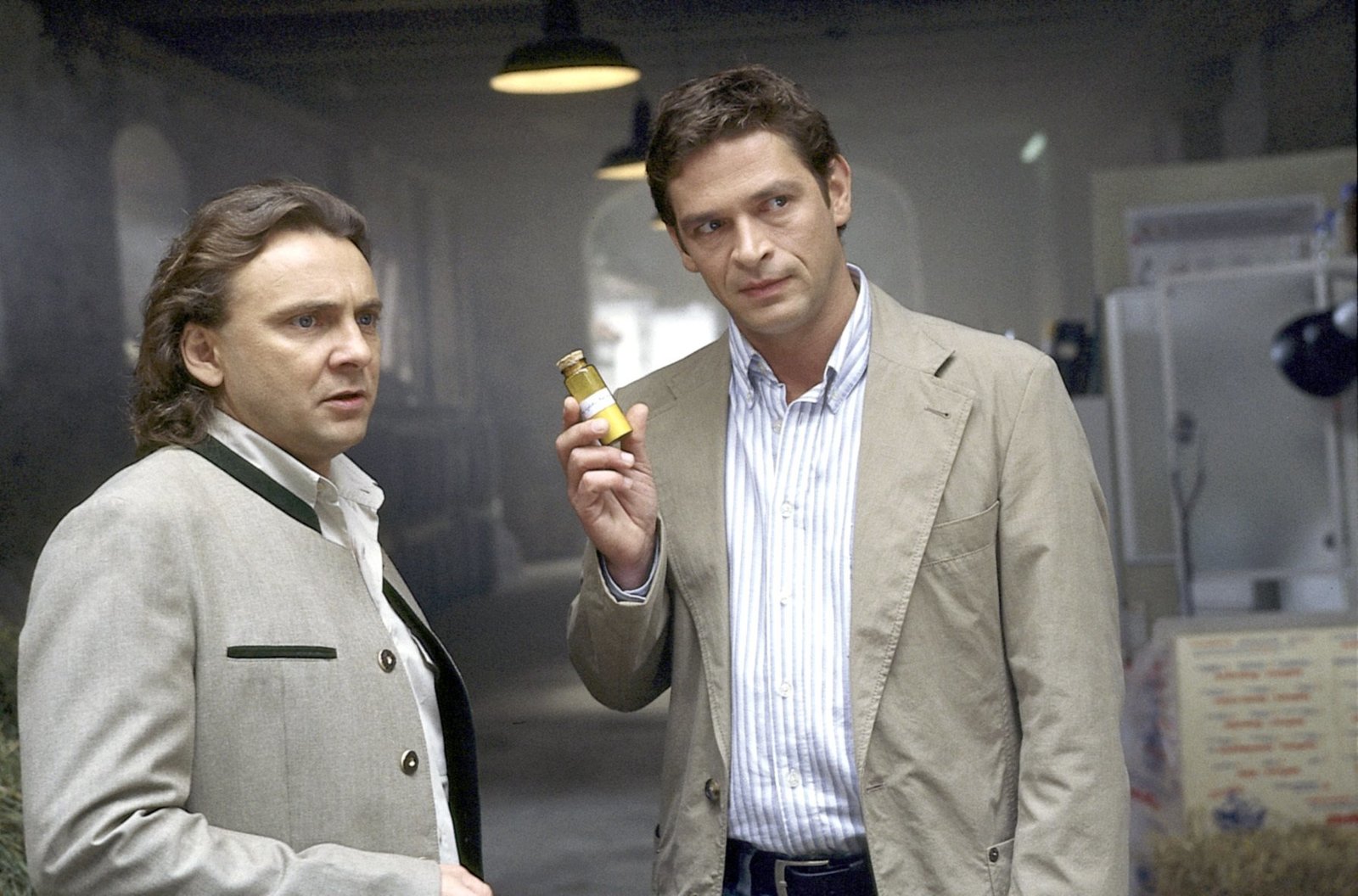 Erst sterben, dann erbenTheodor Mossthaler (Christian Pogats, li.) kann nicht glauben, dass Cop Christian Lind (Tom Mikulla, re.) das Gift, durch das sein Vater zu Tode kam, ausgerechnet bei den Arzneien der Hofapotheke zu finden ist.Bild: © ORF 2