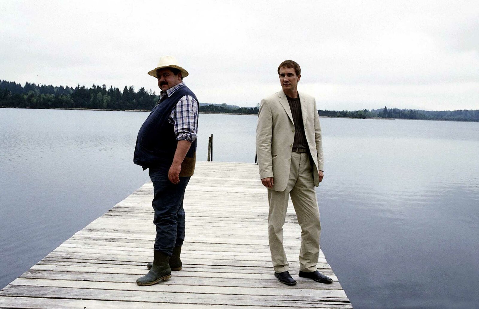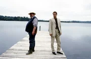 Der Tote am SeeSie könnten unterschiedlicher nicht sein: Hauptkommissar Korbinian Hofer (Joseph Hannesschläger, li.), im Nebenberuf Landwirt, und Hauptkommissar Ulrich Satori (Markus Böker), der Frauenschwarm aus München.Bild: © ORF/-. Andere Verwendung
