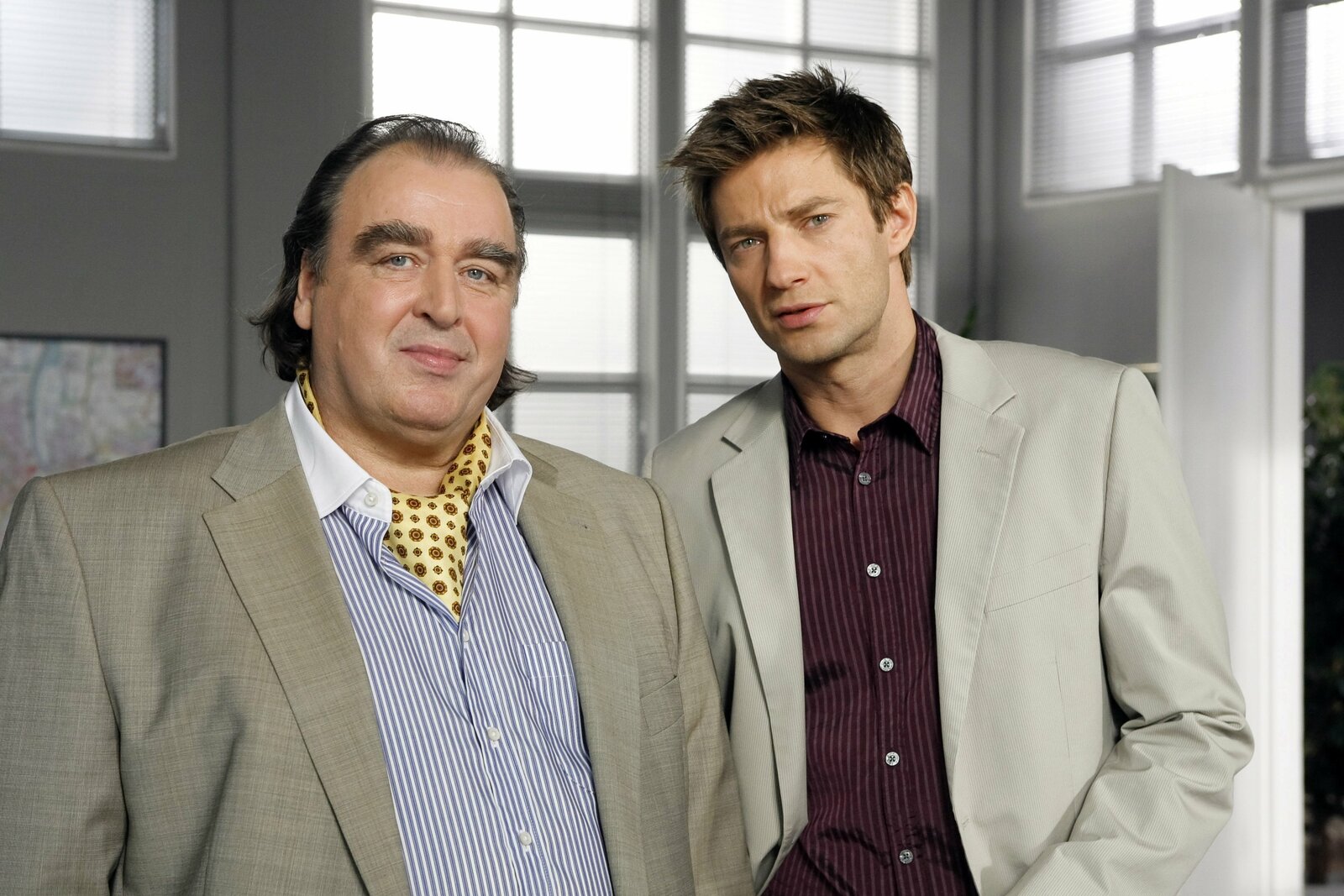 Zu Tode gekuscheltDie Kommissare Bach (Patrick Kalupa, l.) und Stadler (Dieter Fischer, r.) ermitteln im Mordfall des Kuscheltrainers Marco Däubler.Bild: © Bojan Ritan / Die Verwendung ist nur bei redak / ZDF / © ZDF/Bojan Ritan