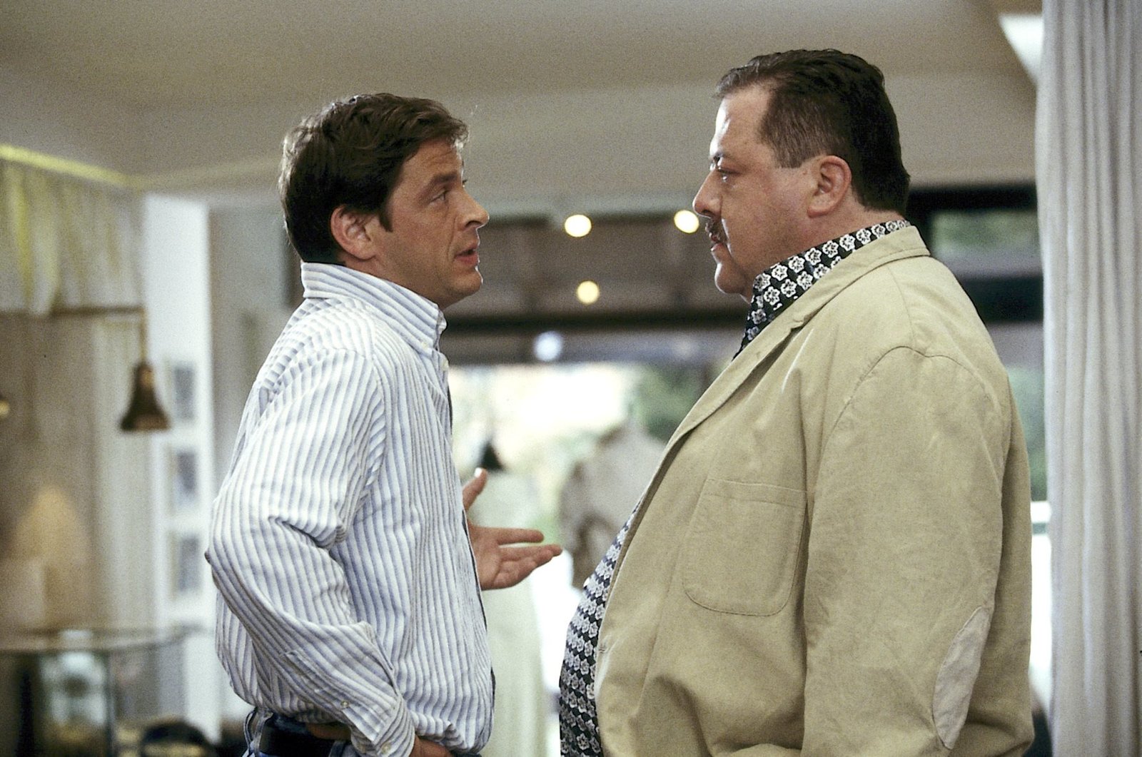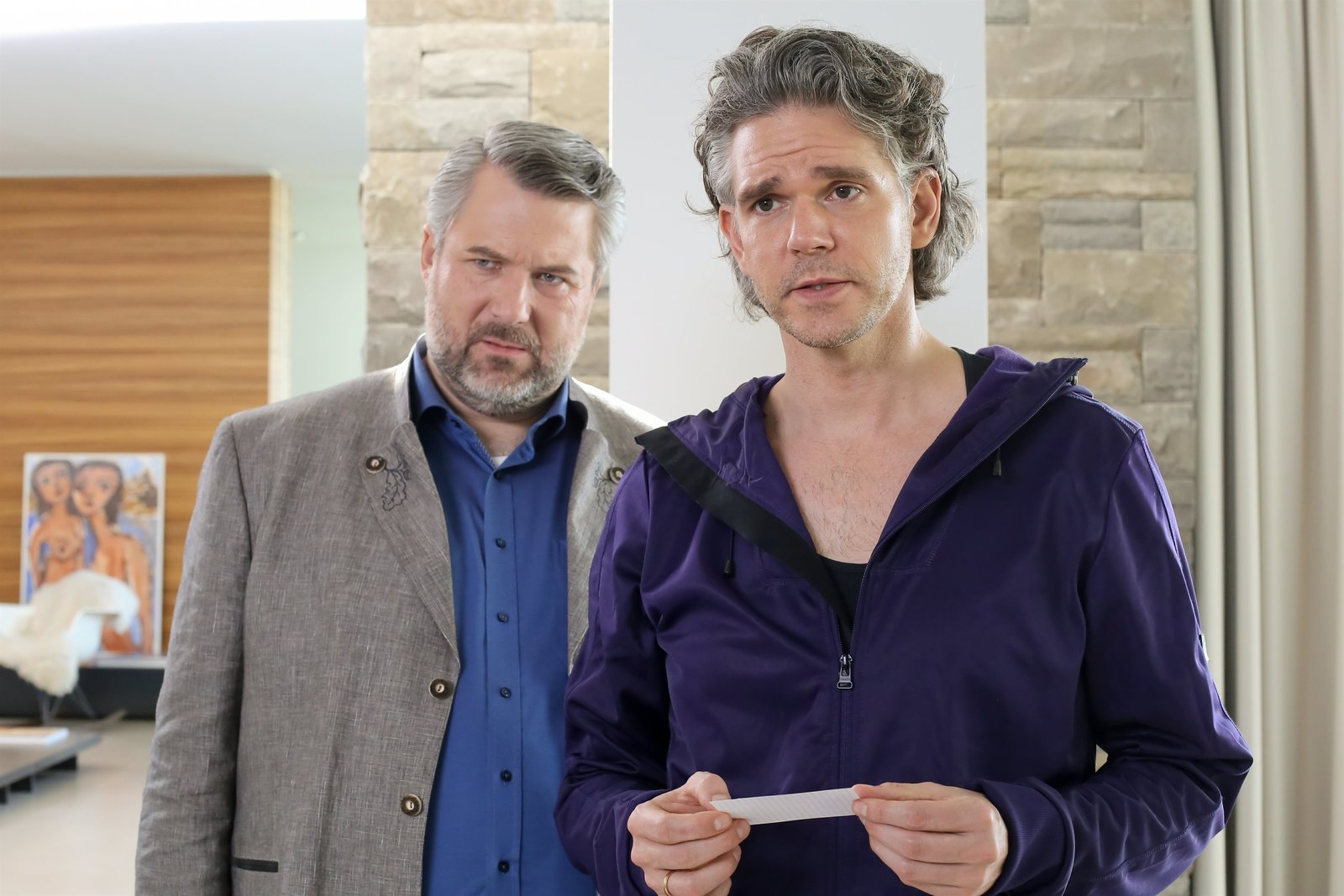 Zu Tode betrübtSven Hansen (Igor Jeftic, l.) hat herausgefunden, dass sich Ludwig Steiner (Dirk Mirau) mit seiner Frau an der Ermordeten bereichtert hat, aber ist er deswegen auch ein Mörder?Bild: © ORF 2