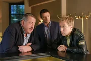 Dumm gelaufenDie Kommissare Korbinian Hofer und Sven Hansen ahnen, dass Peter Martinek, der Sohn des Opfers, nicht die Wahrheit sagt (v.li.: Joseph Hannesschläger, Andreas Nickl, Igor Jeftic).Bild: © ORF/ZDF/Christian A. Rieger
