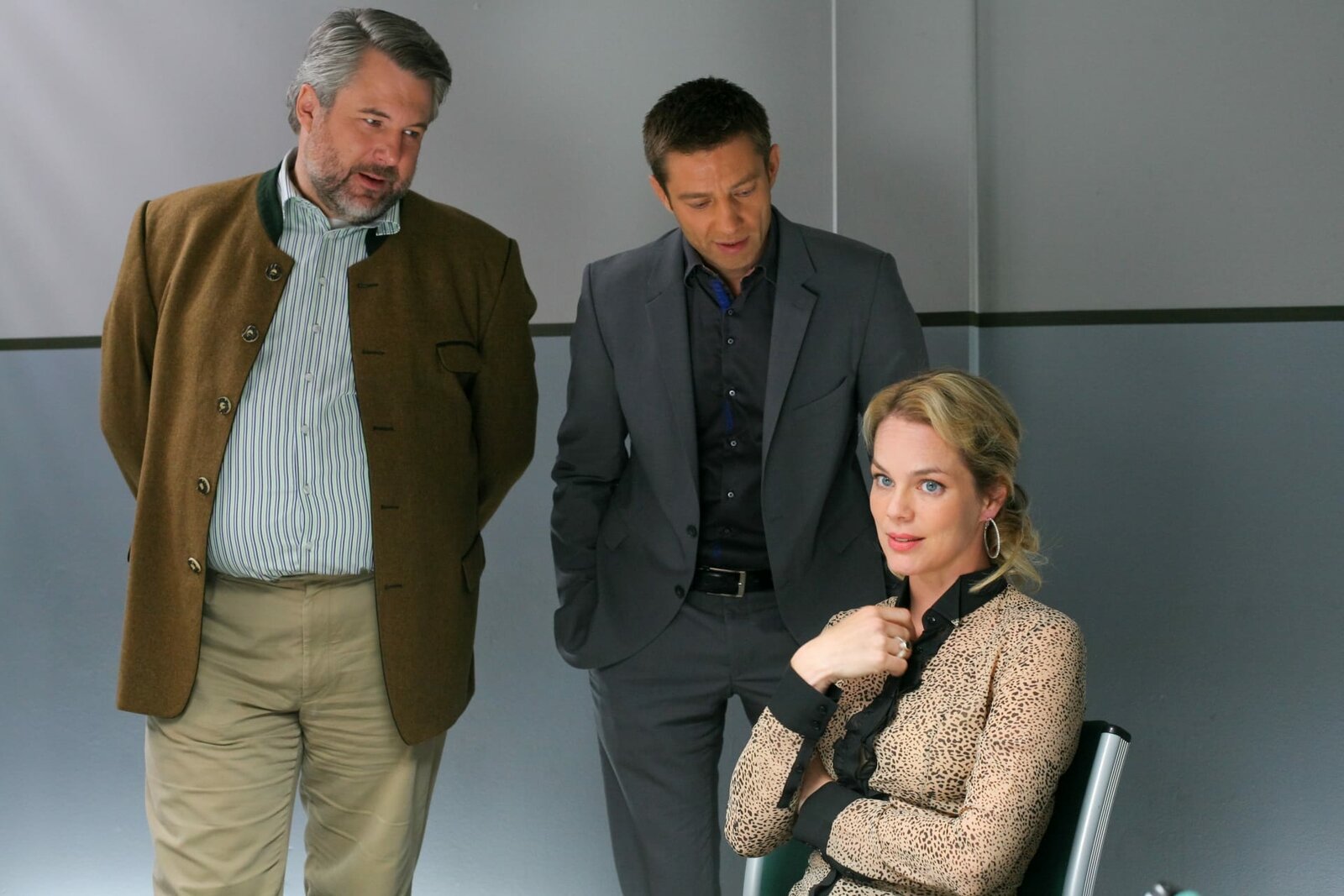 Die Rückkehr der SchwesterDie Mordkommission Hansen (Igor Jefti?, l.), Stadler (Dieter Fischer, M.) und Mohr (Max Müller, r.) klärt den Mord an Hotelbesitzerin Antonia Scheuer auf.Bild: © ORF 2
