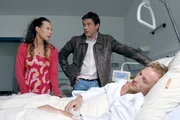 Die tote GeliebteSeine Janina ist nicht tot sondern lebt. Für Sigi Retzer (Martin Rother, liegend) ein Wechselbar der Gefühle, als Christian Lind (Tom Mikulla) mit Sigis Freundin Janina Schedlich (Natalie Renaud-Claus) auftaucht, denn er hielt Janina für das Mordopfer.Bild: © ORF 2